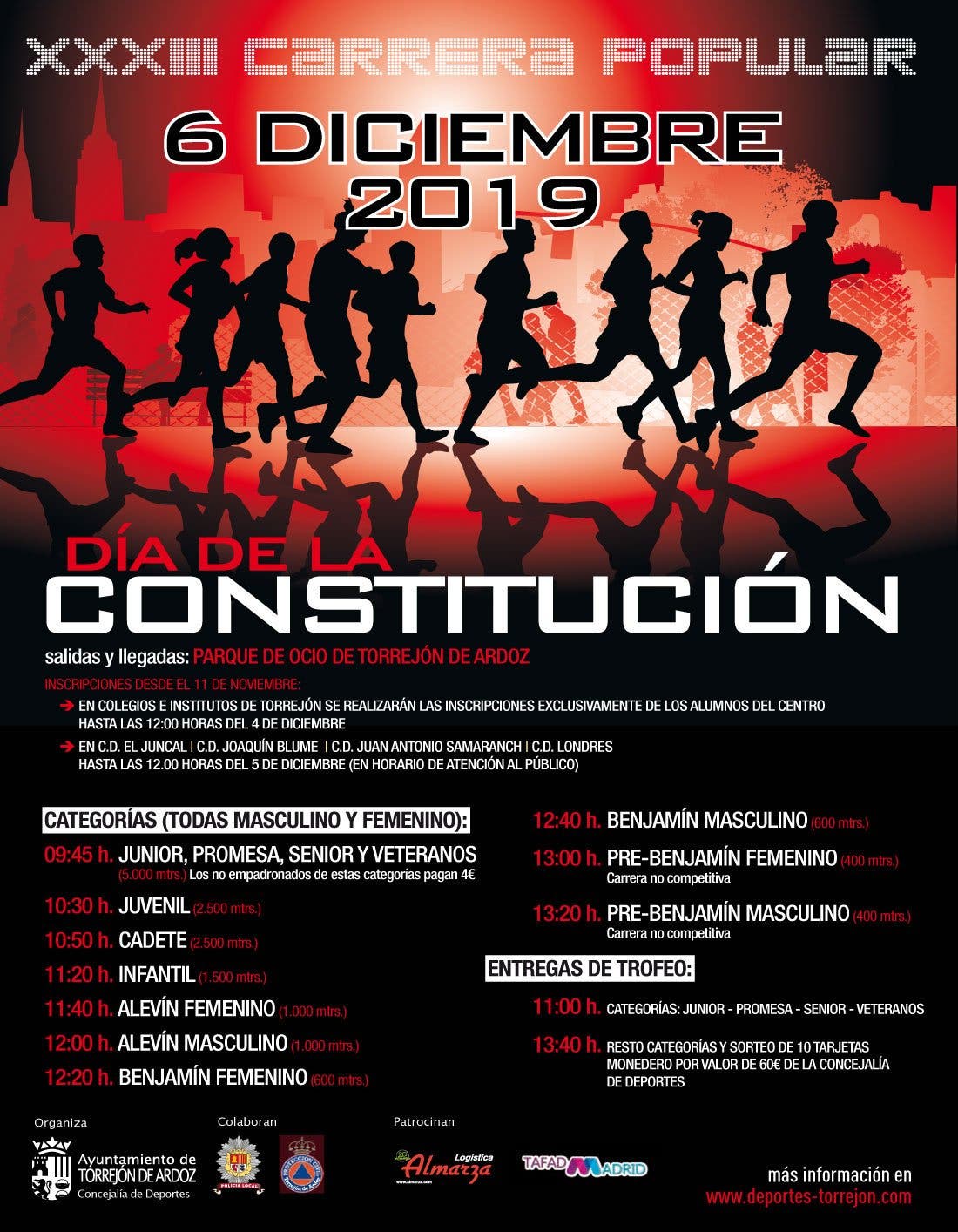 El próximo 6 de diciembre, Torrejón de Ardoz conmemorará el 41 aniversario de la aprobación de la Carta Magna española con la XXXIII Carrera Popular del Día de la Constitución.