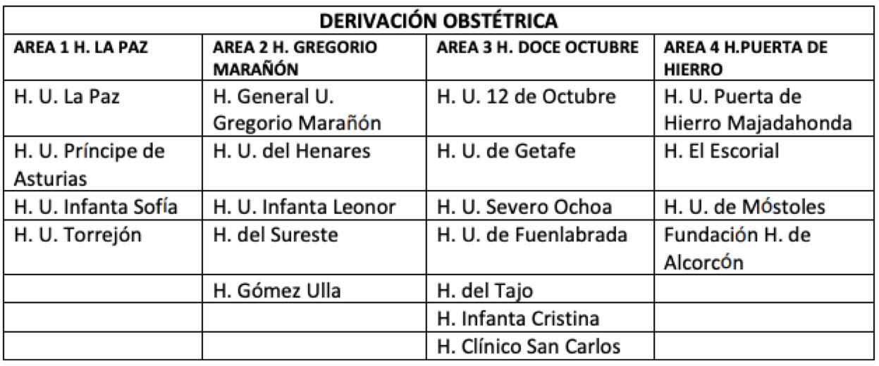 En las urgencias de Obstetricia, Ginecología y Neonatología de cada hospital estará indicado el centro de referencia que le corresponde, si bien, lo más indicado es acudir directamente al Hospital La Paz, Gregorio Marañón, 12 de Octubre o Puerta de Hierro Majadahonda, según corresponda respecto la indicación de las tablas anteriores, con el objetivo de agilizar la atención sanitaria y evitar una exposición frente al virus en el centro sanitario, según indica la Consejería de Sanidad.