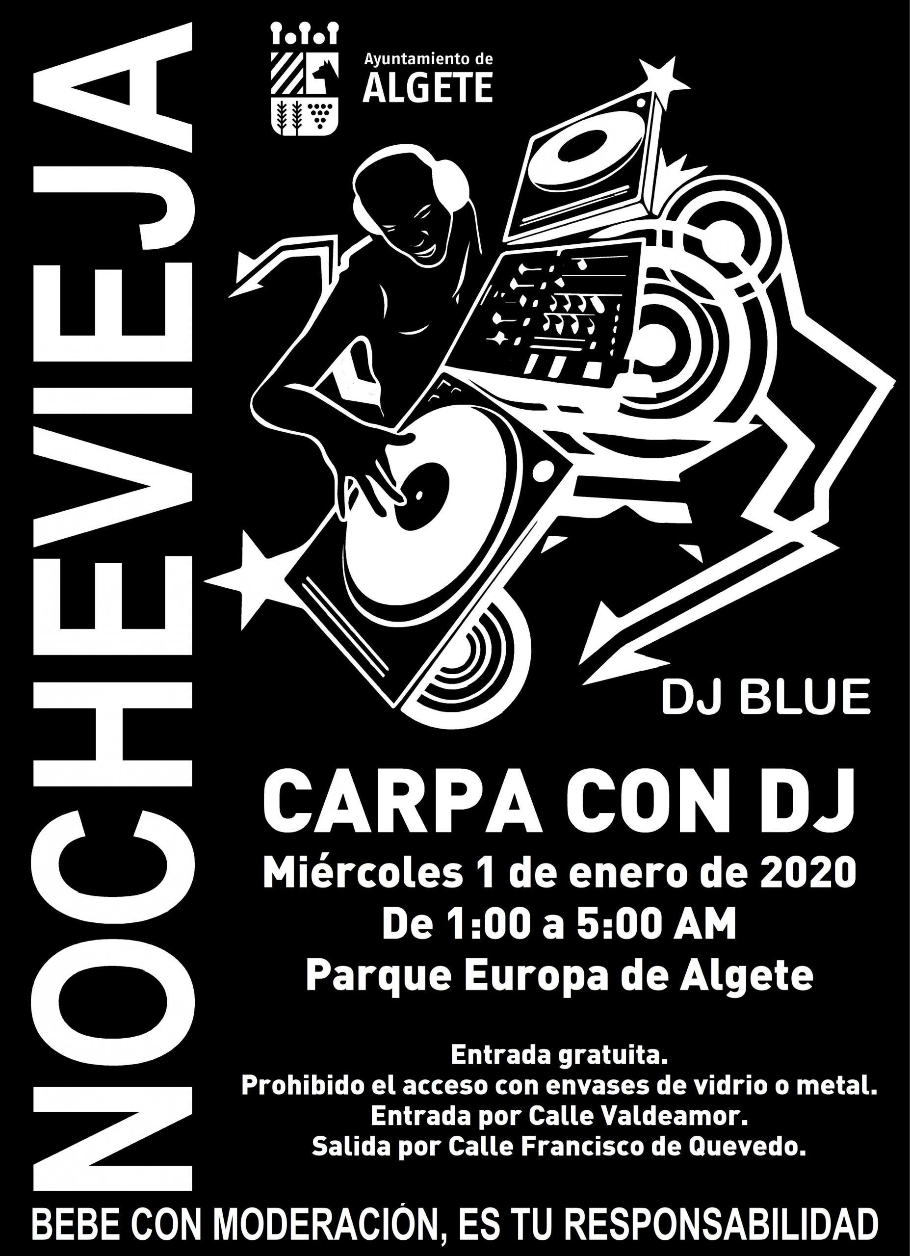 El Ayuntamiento de Algete organiza una fiesta con DJ Blue y entrada libre para celebrar la entrada del nuevo año en la madrugada del 31 de diciembre al 1 de enero de 2020, desde la 1 hasta las 5 horas.