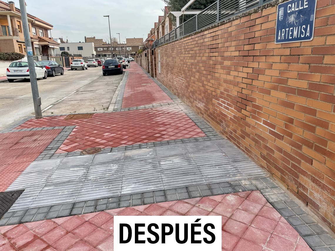 Antes y después: el impresionante cambio de varias aceras de Torrejón tras su reforma