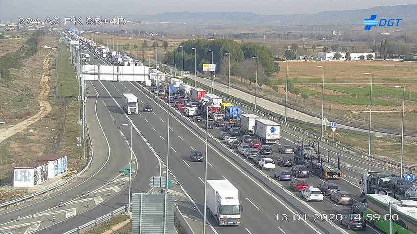 Un alcance entre dos camiones a la altura del kilómetro 38, sentido salida de Madrid, en Alcalá de Henares, ha provocado fuertes retenciones en la autovía, han confirmado a MiraCorredor fuentes del 112 de la Comunidad de Madrid.