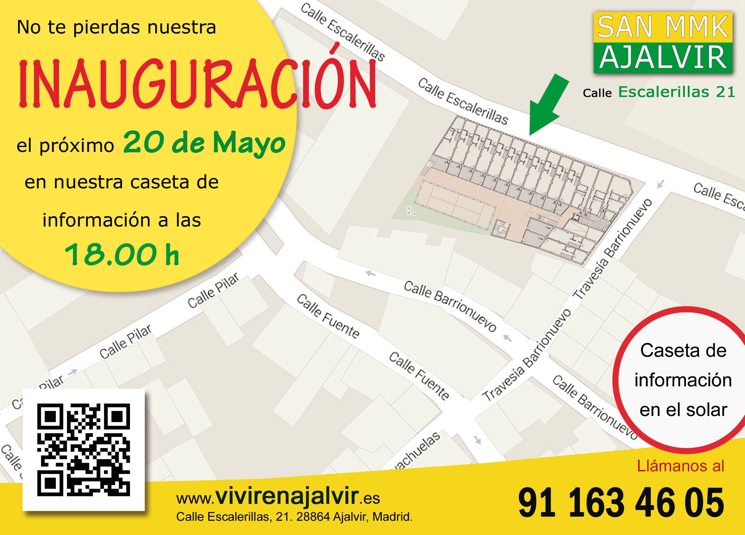 La cita es este viernes 20 de mayo a partir de las 18:00 horas en la calle Escalerillas, número 21 de Ajalvir. Allí, en la caseta de información cercana al solar, podrás ser el primero en descubrir esta nueva promoción de 34 viviendas de obra nueva, de 1, 2 y 3 dormitorios con patio inglés, garaje y trastero individualizado. Además contarán con pista de padel, zonas ajardinadas y conserjería.
