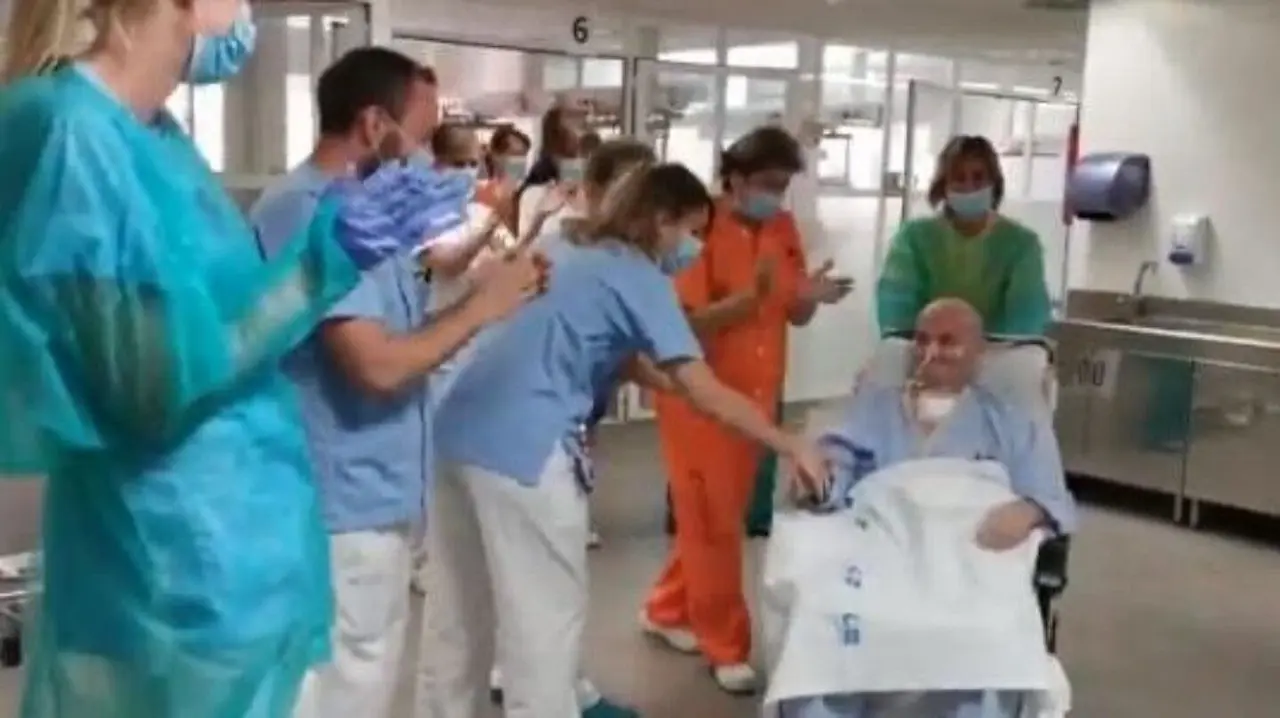 La Consejería de Sanidad de la Comunidad de Madrid ha difundido un vídeo en el que se ve al hombre abandonar la UCI acompañado de los aplausos y el acariño de los profesionales sanitarios.