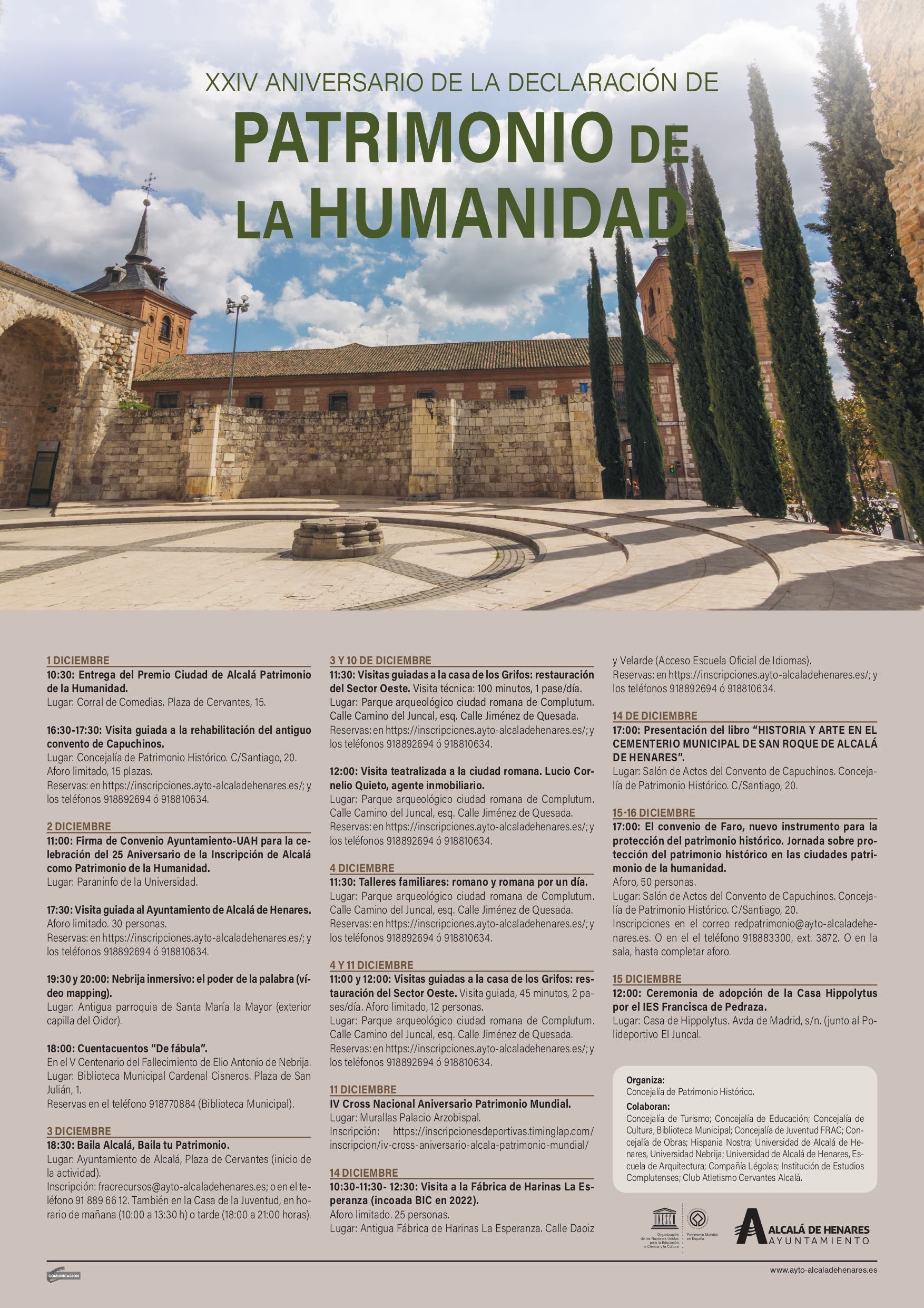 «También tendremos actividades deportivas como el IV Cross Nacional Aniversario Patrimonio Mundial, el 11 de diciembre o talleres familiares en la Ciudad Romana de Complutum, porque creemos que no se protege lo que no se conoce, y con este tipo de propuestas damos a conocer nuestro Patrimonio a la ciudadanía», ha detallado.