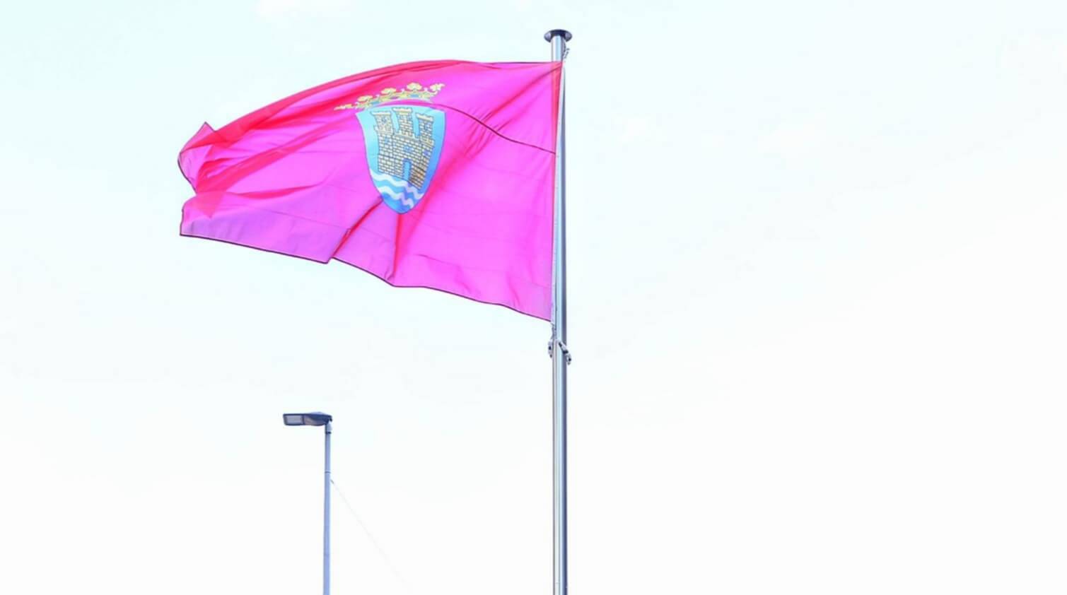 Alcalá de Henares coloca una bandera de la ciudad en Vía Complutense