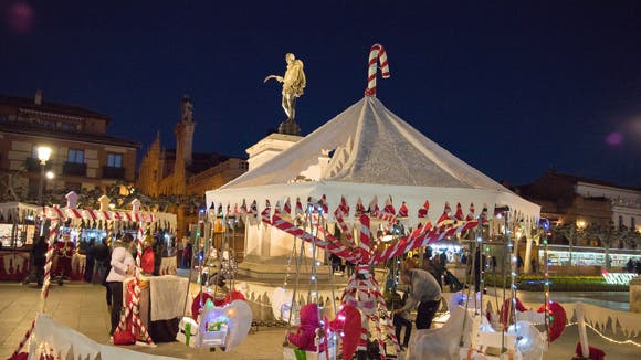 La Plaza de Cervantes presentará un aspecto totalmente renovado, y aunque conservará las tradicionales casetas de madera, estará presidida por un monumental árbol iluminado de navidad de 26 metros de altura, así como por cuatro enormes bolas de luz transitables y una noria gigante junto a la Torre de Santa María, que también estrenará iluminación navideña.
