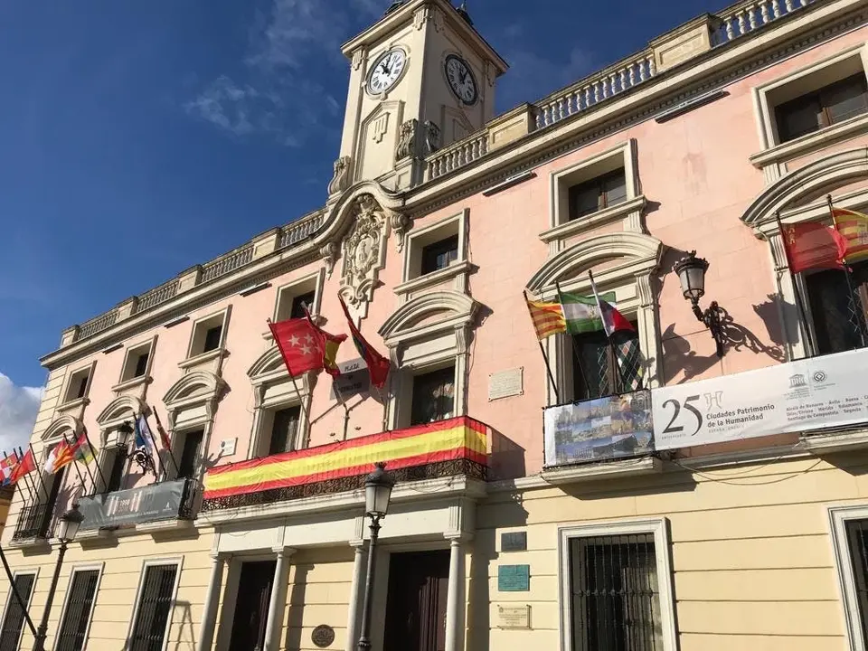 Alcalá de Henares finalmente coloca una gran bandera de España en el Ayuntamiento