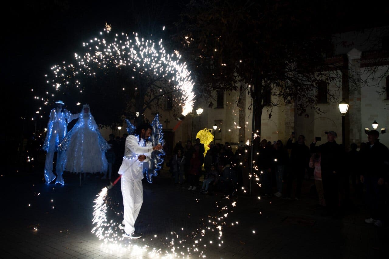 Tras el pregón y la chocolatada popular en la Plaza de Cervantes, donde abrió al público el mercado navideño con la noria, la pista de hielo o el tiovivo entre otras atracciones, el público pudo disfrutar de un pasacalles navideño que recorrió las iluminadas calles del Centro Histórico hasta los Santos Niños pasando por la calle Mayor.
