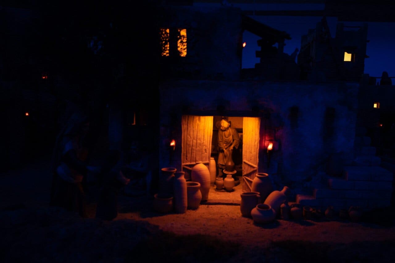 Por último, tuvo lugar la apertura de puertas del Belén Tradicional, de la Asociación Complutense de Belenistas, ubicado en la Casa de la Entrevista. Se trata de un año más será un Belén de unos 35 metros cuadrados a cuatro caras vistas, con unas 75 figuras de entre 30 a 24 centímetros. Este año regresa con renovado esplendor pues ha sido objeto de una exhaustiva reforma, que transporta a los visitantes al momento en que los Reyes Magos llegan para rendir homenaje de adoración al Niño Jesús. La escena, meticulosamente recreada, muestra a la Sagrada Familia acogiendo en un humilde aprisco la visita de los viajeros reales. Es esta recreación cuidada por los detalles y la fidelidad a la narrativa bíblica lo que hace que ese momento cobre vida ante nuestros ojos. Por eso este belén, este año, lo han denominado Entrevista en Belén, en homenaje también a la sala de exposiciones que ha acogido este belén durante más de 22 años.