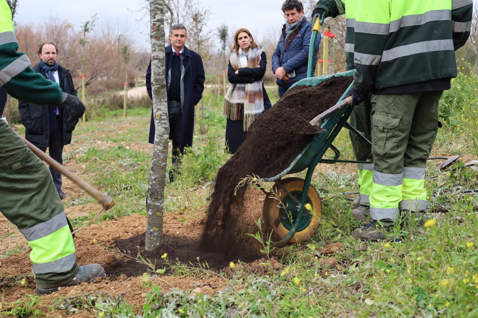 La alcaldesa de Alcalá de Henares Judith Piquet y el concejal de Medio Ambiente Vicente Pérez, han visitado hoy la plantación de más de 1.400 encinas en el Gran Parque de Espartales, acompañados por el director general de la empresa Pavasal, Álvaro Marchesi; el delegado en Madrid-Zona Centro, Mario Gómez, y del director de proyecto y promoción logística, Juanjo Bernardino.