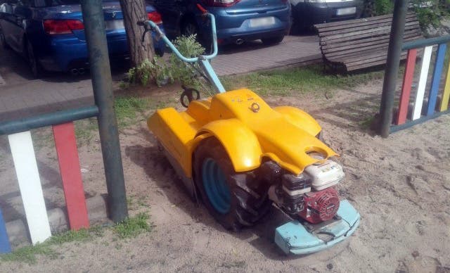 Es una máquina autopropulsada, con ruedas y con mandos para guiado manual, de fácil maniobrabilidad y que cuenta con criba y tolva de recogida para eliminar los residuos de la arena (restos de cigarros, cristales, plásticos, hojas, ramitas, etc.), y profundizando además en la arena con objeto de favorecer la aireación. Igualmente, las acciones de limpieza llevadas a cabo incluyen el uso de otra maquinaria especial como es el caso de motoazadas para zonas con amplia vegetación en el área infantil.