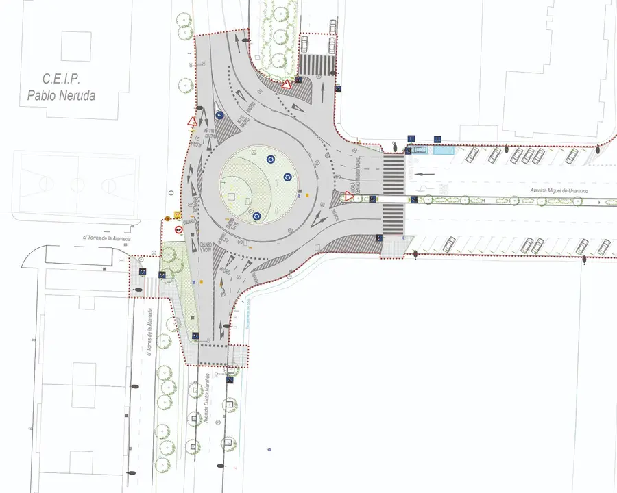Además, se crea una nueva glorieta en la intersección de las calles Dámaso Alonso y Francisco Ayala, junto al Colegio Público Mozart. Esta nueva rotonda conseguirá atemperar la velocidad de los vehículos, así como mejorar la accesibilidad y la seguridad peatonal en el entorno de este centro educativo, según el Consistorio.