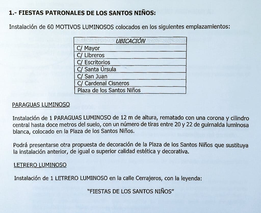 Según los propios pliegos de condiciones aprobados por el Gobierno de Alcalá, y publicados en el Perfil del Contratante, 30 días antes del encendido debía estar la definición de los enganches y presentación del proyecto técnico. Por ello, los populares destacan «la imposibilidad, de entrada, de cumplir este requisito ya que el Ayuntamiento publicó la convocatoria el 30 de junio».