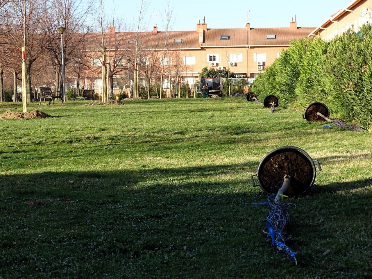 En estos días se están llevando a cabo nuevas plantaciones en el distrito V, en el barrio de El Ensanche, concretamente en el entorno de la zona deportiva, con entradas por calles Gonzalo Torrente Ballester y Gabriela Mistral.