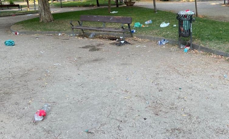 Desde el PP de Alcalá explican que esta botellones «en algunos casos perturban el descanso de los vecinos por las molestias y ruidos que ocasiona, pero también a los usuarios de esos parques a la mañana siguiente en cuanto a la suciedad y el estado en el que se quedan esas zonas tras un botellón».