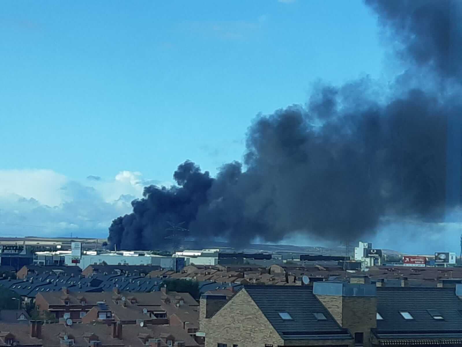 Un incendio declarado este martes por la tarde en el exterior de una planta de reciclaje de papel (Grupo Layna), situada en la calle Perú del polígono Azque de Alcalá, ha provocado una enorme columna de humo visible desde diferentes puntos del Corredor del Henares.