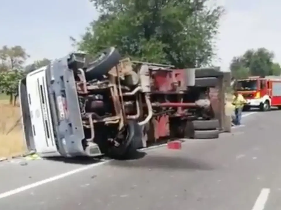 Vuelco camión y alcance en sentido contrario por efecto “mirón”. #BomberosCM #SUMMA112 @guardiacivil y policía local.