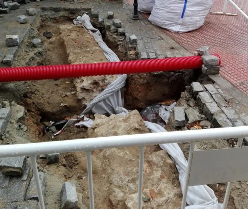 Aparecen posibles restos de la muralla medieval de Alcalá al abrir una zanja