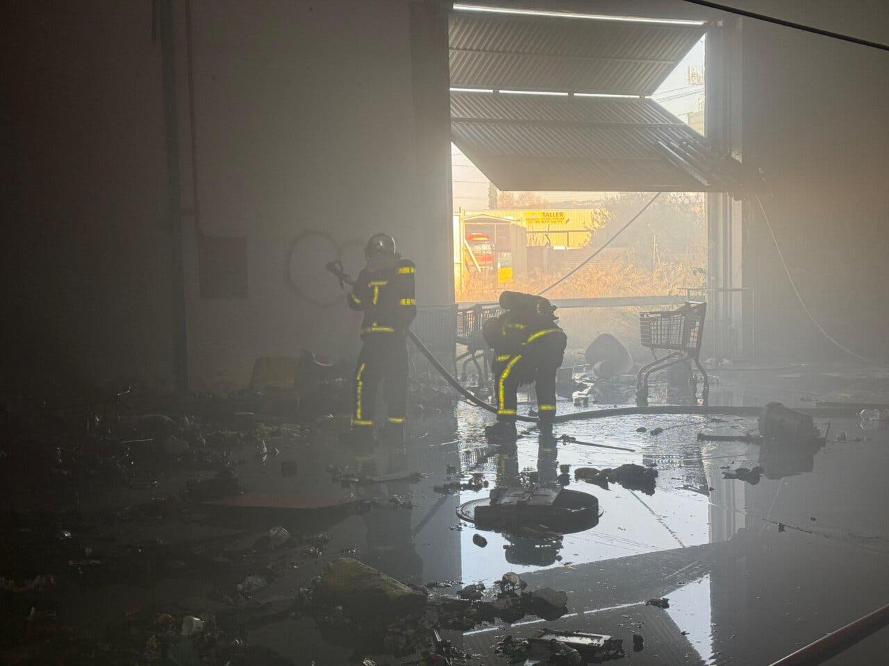 Los Bomberos han extinguido el fuego, que se ha producido sobre las 13:00 horas, y han ventilado la nave. Aunque el fuego se ha iniciado en unos muebles y enseres, las causas se desconocen.
