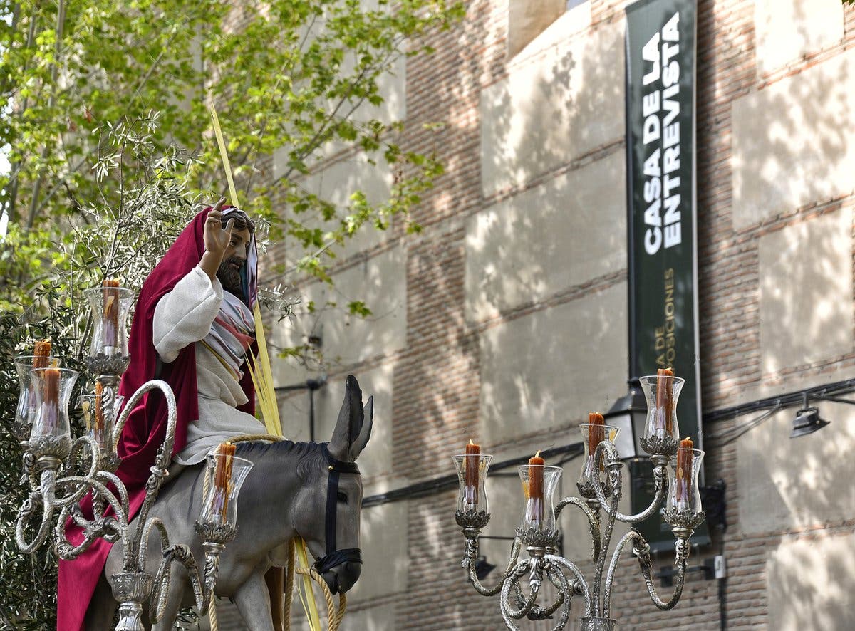 En Alcalá, por la mañana tuvo lugar la procesión de la Borriquita, a hombros de la Cofradía de la Soledad, que este año celebra su 20 aniversario.