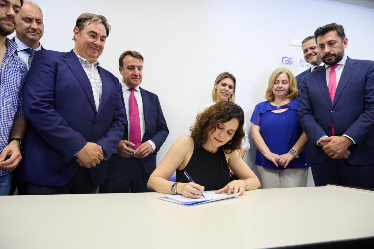 Ayuso inaugura la nueva sede del PP de Alcalá y firma el aval para la candidatura de Feijóo