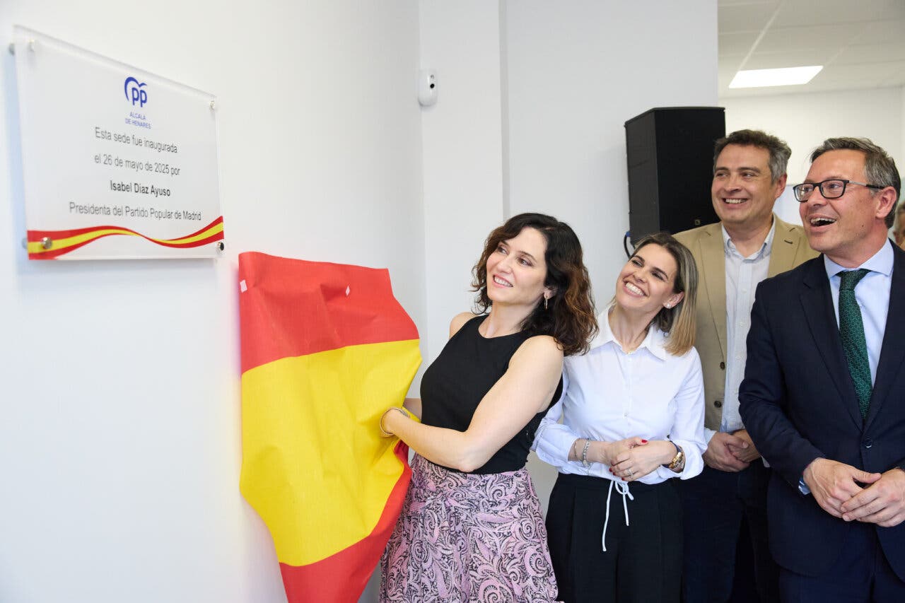 Ayuso inaugura la nueva sede del PP de Alcalá y firma el aval para la candidatura de Feijóo
