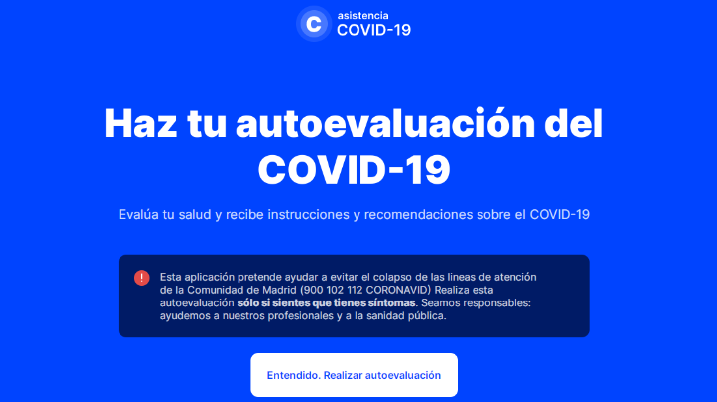 Paralelamente a la puesta en marcha de los primeros hoteles medicalizados, la Comunidad de Madrid ha estrenado una web pionera que facilitará examinar a los ciudadanos y sus posibles dolencias desde sus casas: www.coronamadrid.com. Además se consigue con ello descongestionar el teléfono gratuito 900-102-112, que seguirá funcionando.