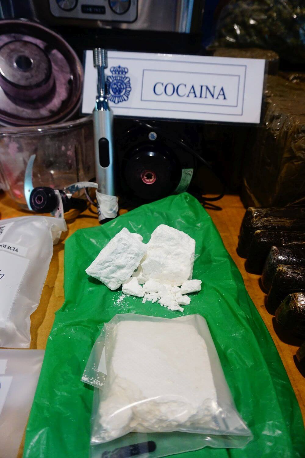 En el interior del domicilio, los agentes descubrieron un laboratorio para la fabricación de TUSI (cocaína rosa), resultando detenidas otras tres personas más, logrando así el desmantelamiento de un punto de distribución y fabricación de sustancias estupefacientes.