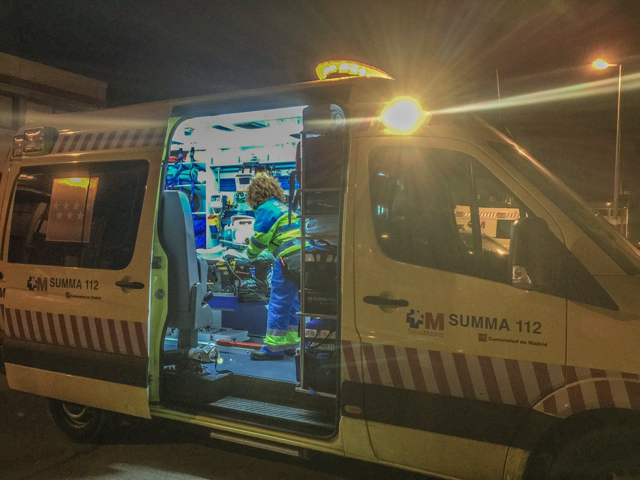 El SUMMA trasladó al padre de la menor al Hospital Gregorio Marañón herido de gravedad, mientras que el arrestado fue llevado al Hospital de Alcalá con cortes leves en la mano.