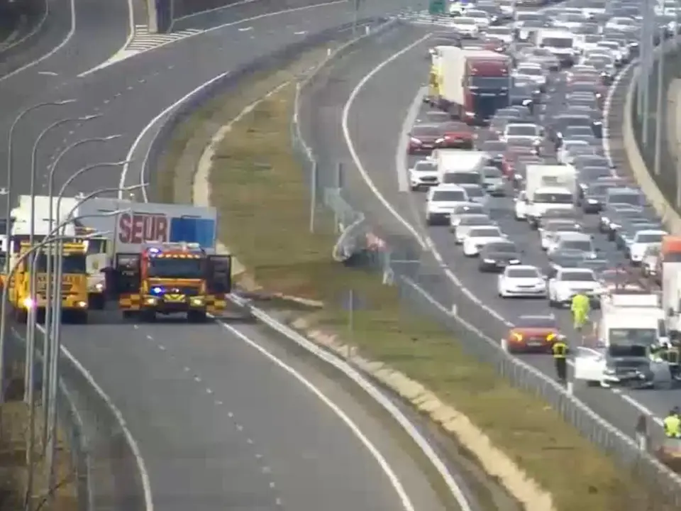 Además, ha tenido que ser cortado el carril derecho del tronco principal por un alcance, que ha provocado más de dos kilómetros de retenciones, según Tráfico.