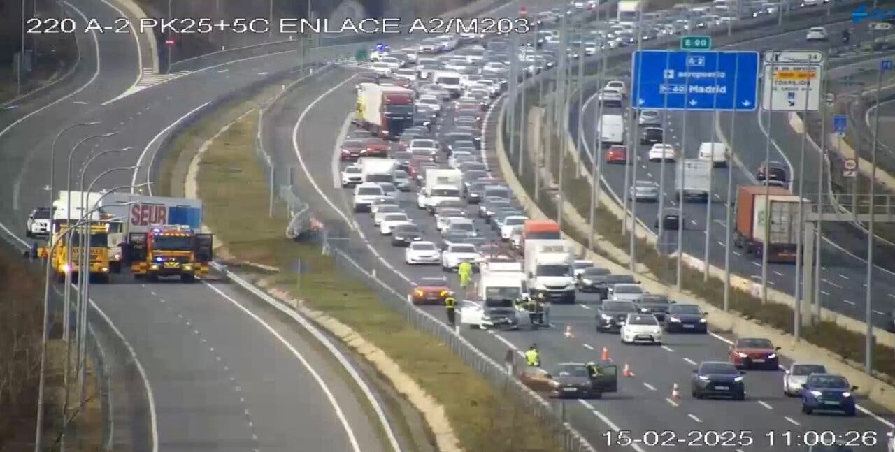 Dos accidentes han complicado este sábado la circulación en la A-2, sentido salida de Madrid, en el kilómetro 25, ha informado la Dirección General de Tráfico (DGT).