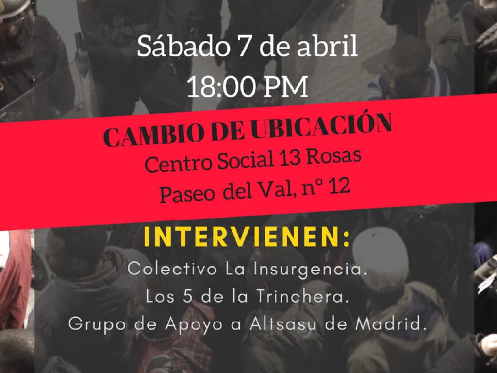 Alcalá Libre y la Plataforma Absolución 13 Rosas, organizadores del evento, han tomado la decisión de cambiar el lugar del acto debido a las «últimas presiones del Ayuntamiento de la ciudad para preservar el local de la PAH-RSP», según informan en un comunicado.