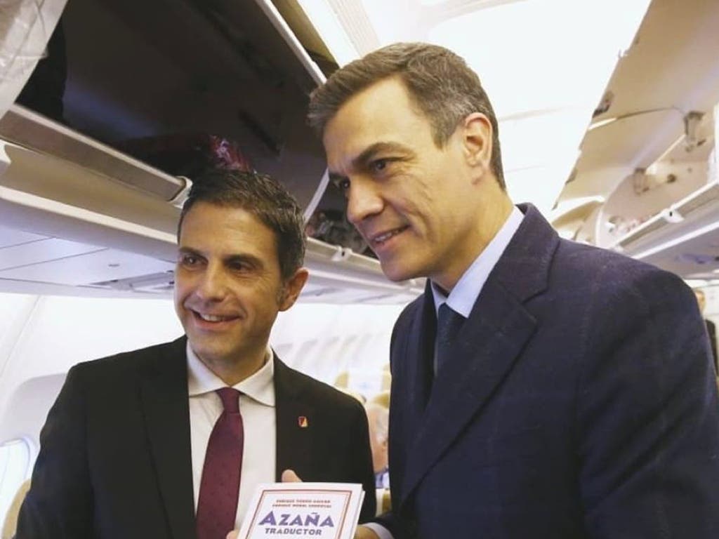 Sánchez ha invitado en plena precampaña a un grupo de personas a este viaje en el avión Falcon, entre las que se encontraban el alcalde socialista de la ciudad complutense, familiares de Azaña, miembros del Gobierno y representantes de la cultura como el poeta y director del Instituto Cervantes, Luis García Montero, y los cantautores Rosa León y Paco Ibáñez.