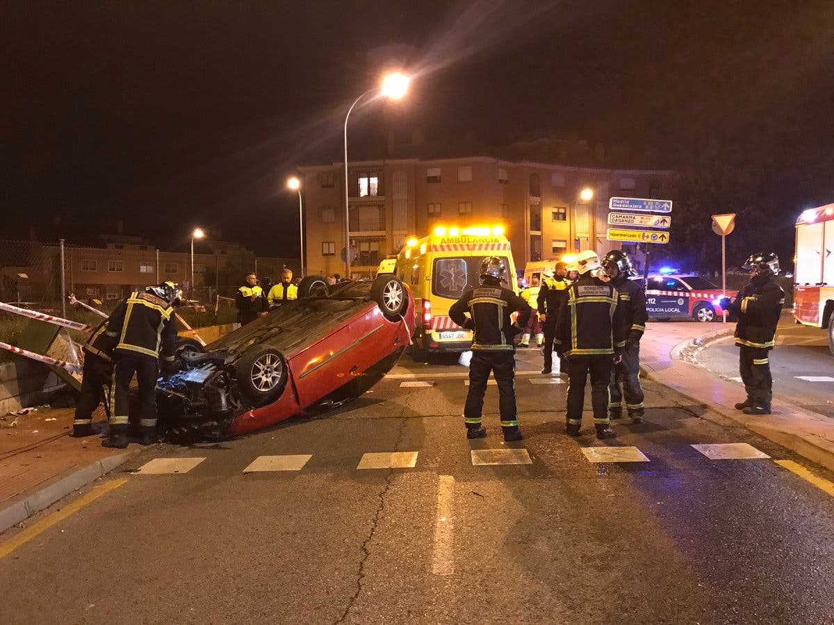 El copiloto del coche que quedó volcado, de 34 años, necesitó ayuda de los Bomberos para poder ser liberado y, posteriormente, fue trasladado al Hospital de Alcalá en estado grave.