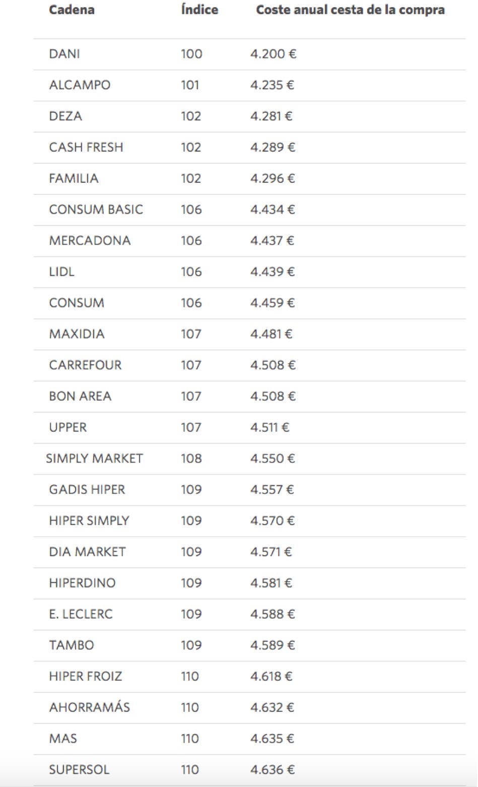 La OCU (Organización de Consumidores y Usuarios) ha publicado su estudio anual de supermercados en el que compara precios de las diferentes superficies comerciales repartidas por todo el país.