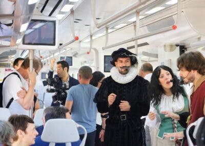 El recorrido comienza en Atocha con un trayecto de 35 minutos. Durante el viaje, un elenco de actores introduce a los pasajeros en el universo del Siglo de Oro. A la llegada, se ofrece una visita teatralizada por los principales monumentos y rincones cervantinos de Alcalá de Henares, con tiempo libre para disfrutar de su gastronomía, su agenda cultural y sus alojamientos.