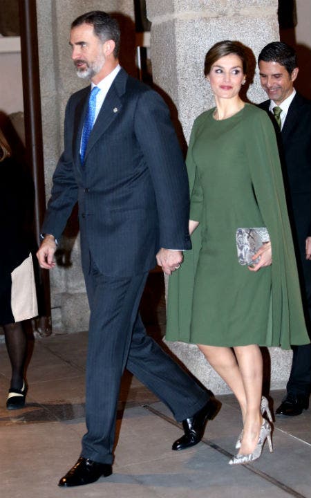 El tejido es de primera calidad, y eso se nota porque tiene muy buena caída, y además, con «un toque español», la capa, que Doña Letizia ha utilizado varias veces. Una inspiración en la moda española tradicional que hace gala de la austeridad, y que completa con un moño bajo también muy español, según la profesora.