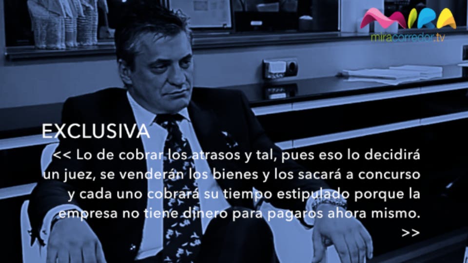 Cristóbal López asegura en este mismo audio al que ha tenido acceso MiraCorredor.tv que la empresa no tiene dinero para pagarles los atrasos y que por tanto será un juez quien subaste los bienes de la compañía para poder hacer frente al dinero que les debe.