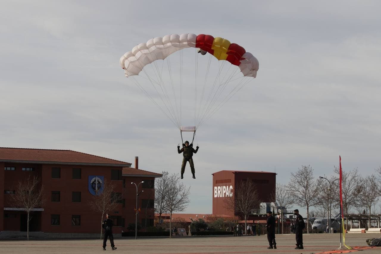Finalmente, la fuerza ha entonado el Himno de la BRIPAC para posteriormente desfilar ante las tribunas de autoridades y el numeroso público compuesto por familiares, veteranos y amigos de la BRIPAC. El acto ha terminado con el lanzamiento paracaidista, en la modalidad de apertura manual, que han pedido disfrutar los presentes.