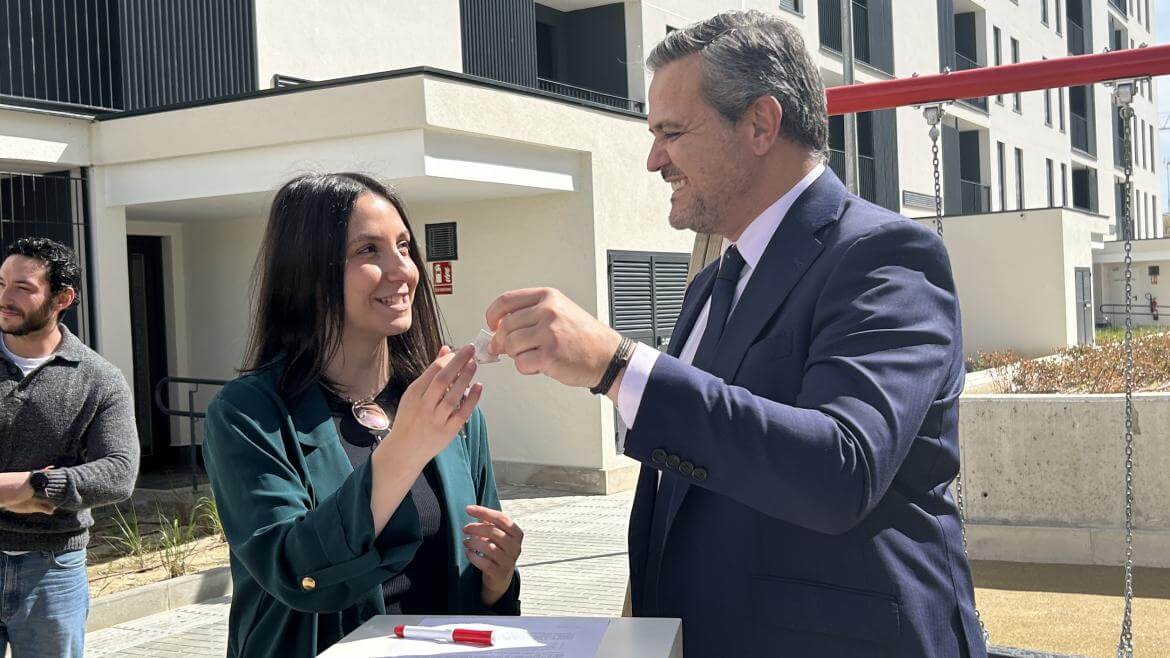 El consejero madrileño de Vivienda, Transportes e Infraestructuras, Jorge Rodrigo, ha entregado este martes las llaves de 280 nuevas viviendas de alquiler asequible en Alcalá de Henares. Rodrigo ha destacado que la Comunidad de Madrid construye una de cada tres viviendas protegidas a través del Plan Vive, el 36,3% de todas las que tienen esta calificación en España.
