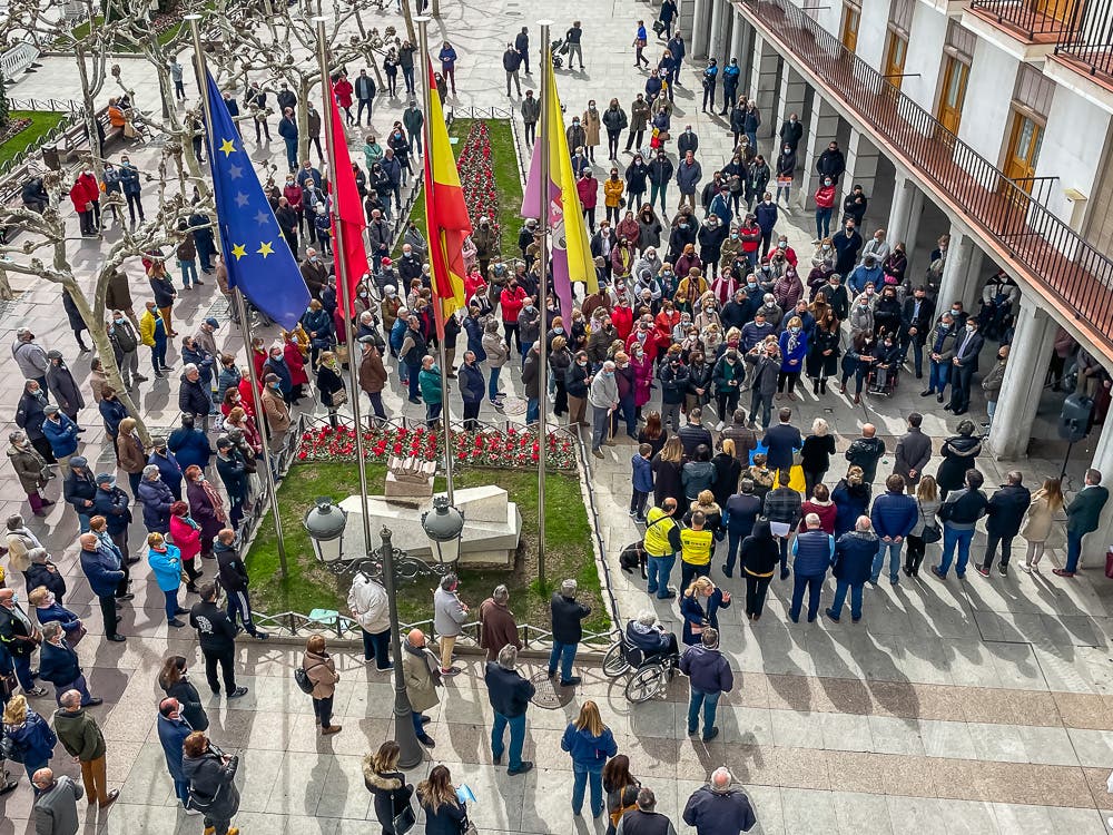 A las 12:00 de la mañana, se han guardado cinco minutos de silencio en las puertas de los ayuntamientos como muestra de solidaridad con el pueblo de Ucrania que está sufriendo la invasión rusa.