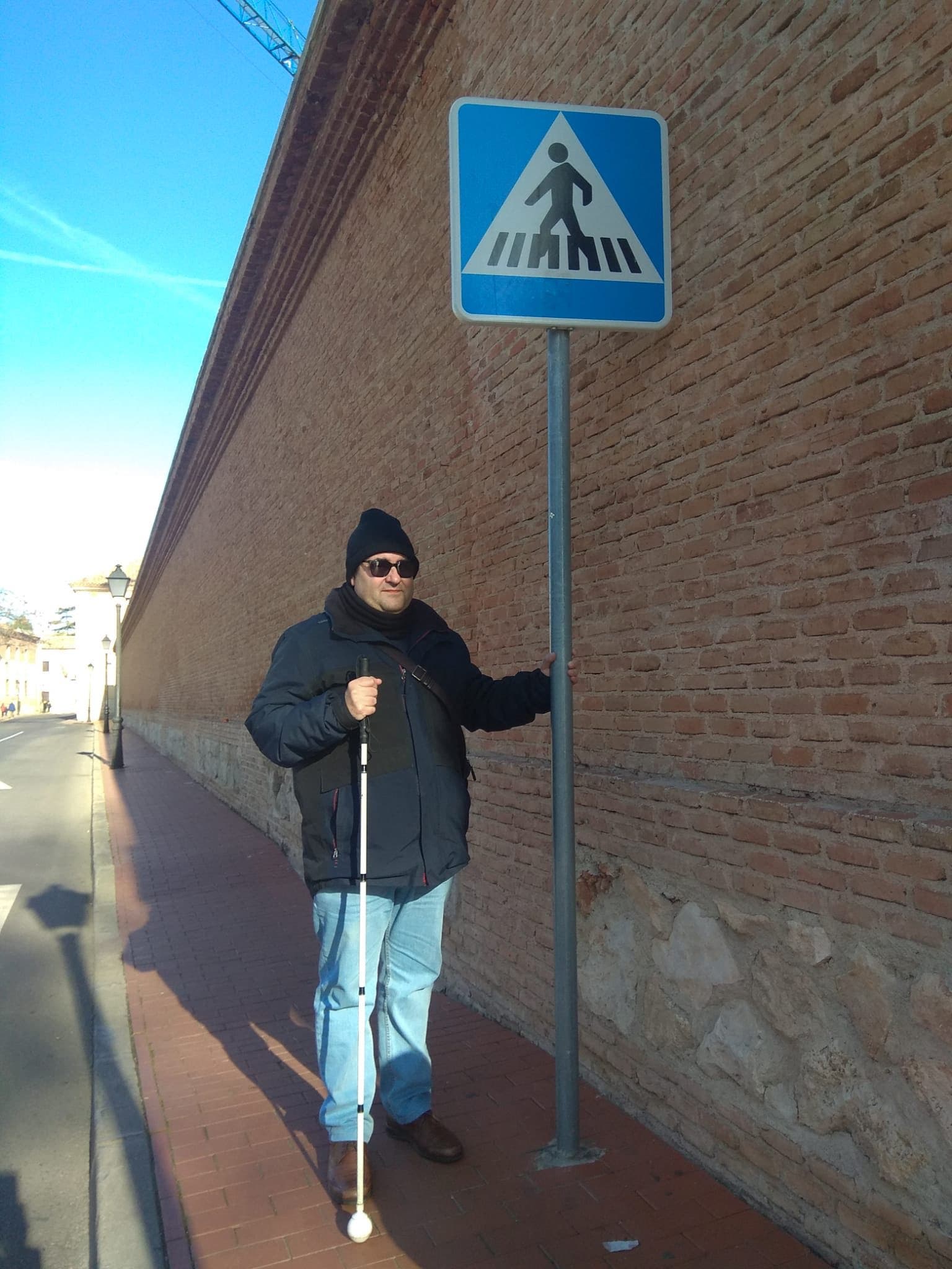 Como ejemplo, ha publicado una foto en la aparece con su bastón al lado de una señal de paso de peatones colocada encima de una acera, entorpeciendo el paso.