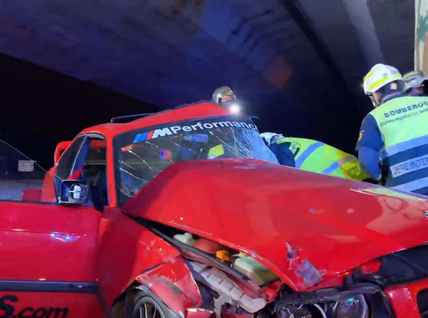 El copiloto, de 21 años, presentaba contusiones y un traumatismo craneoencefálico leve. Ha sido trasladado al Hospital de La Paz con pronóstico reservado y con preaviso. Los Bomberos han tenido que rescatar a ambos.
