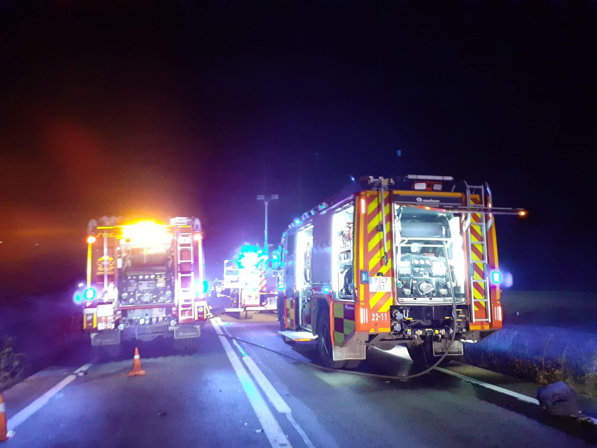 El choque ha producido una fuerte explosión que ha calcinado los vehículos y ha quemado parte de la vegetación, por lo que los Bomberos de la Comunidad de Madrid han tenido que intervenir para sofocar las llamas. Por su parte, la Guardia Civil se ha hecho cargo de la investigación.