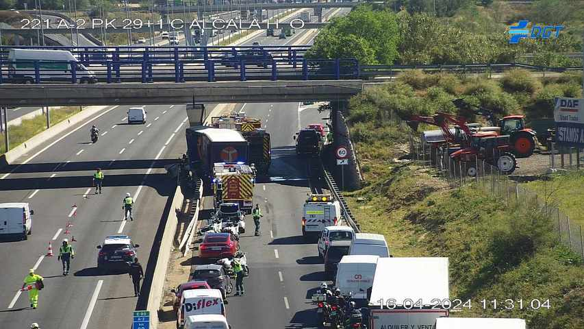 El accidente se ha producido sobre las 11:30 horas en el kilómetro 29, en la vía de servicio dirección Guadalajara, provocando durante varias horas el corte del carril derecho, que ya ha sido reabierto, ha apuntado la DGT.