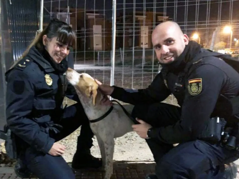 La Policía Nacional ha informado este lunes en Twitter del rescate de un perro abandonado que que corría peligro de ser atropellado en Alcalá de Henares.