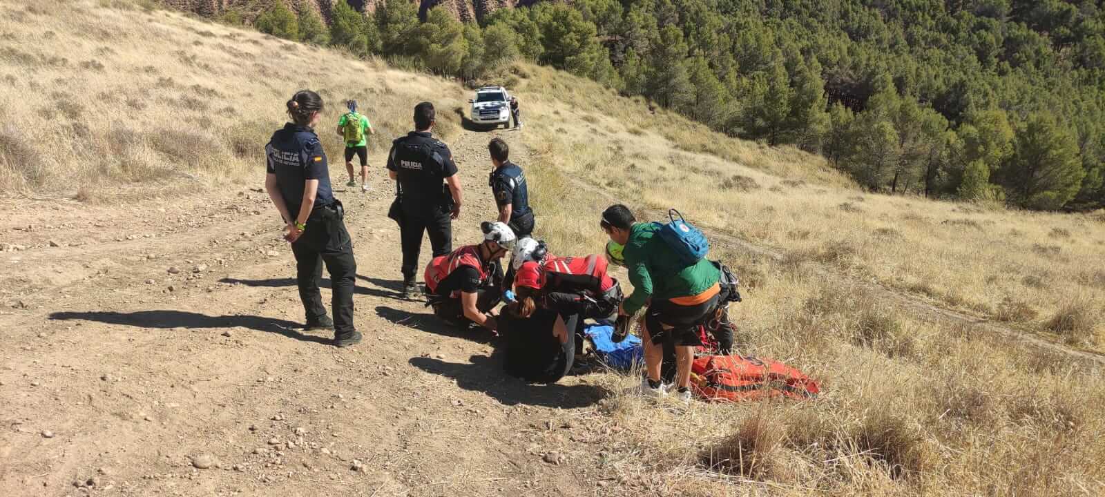 Efectivos de la Policía Local y de los Bomberos de la Comunidad de a Madrid han rescatado a la mujer que presentaba una fractura de tobillo.