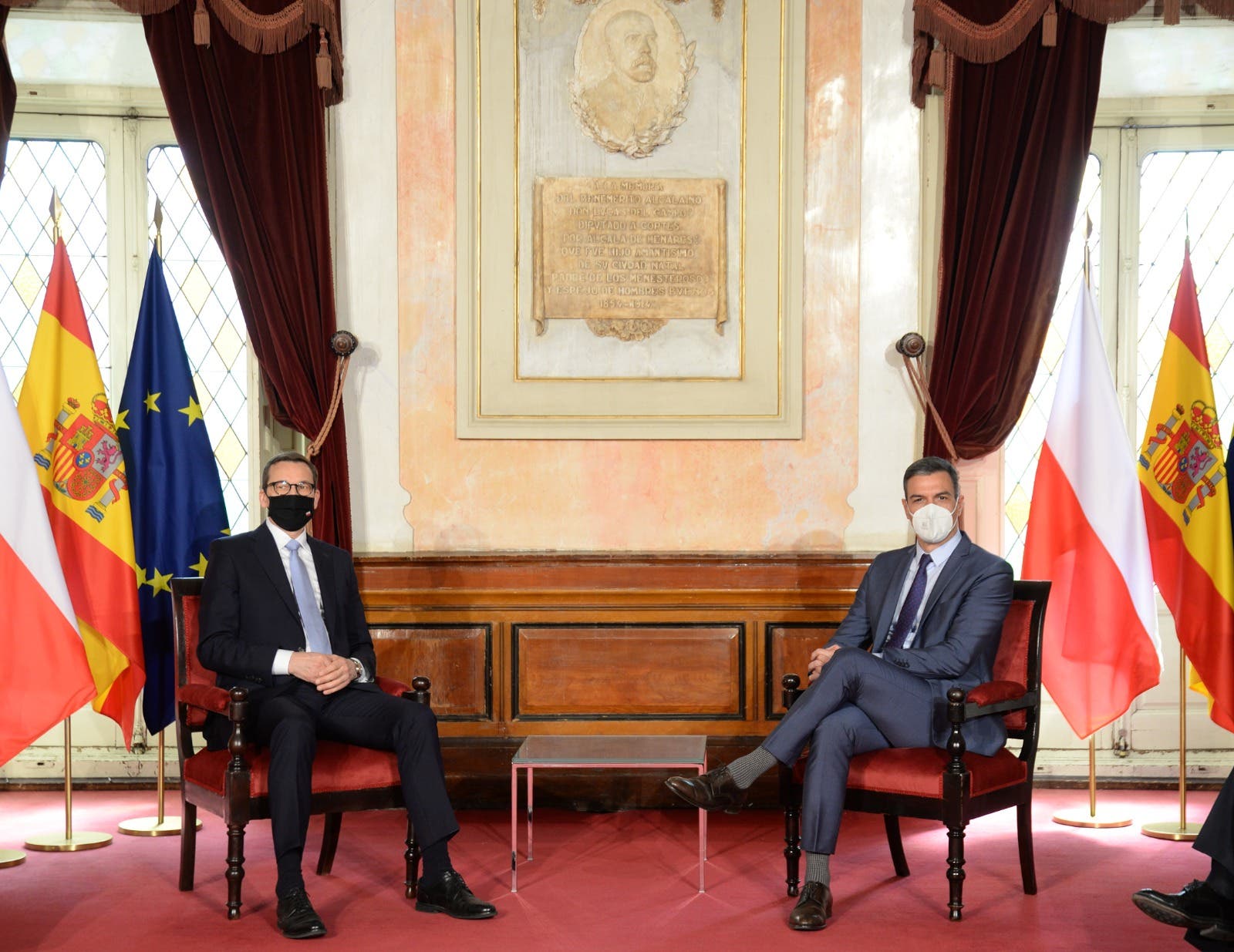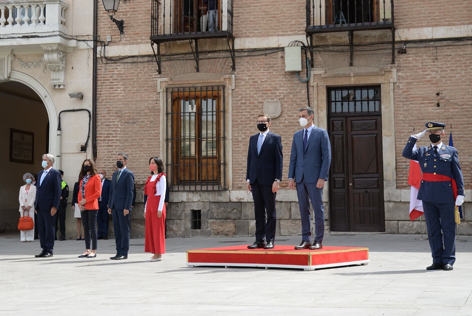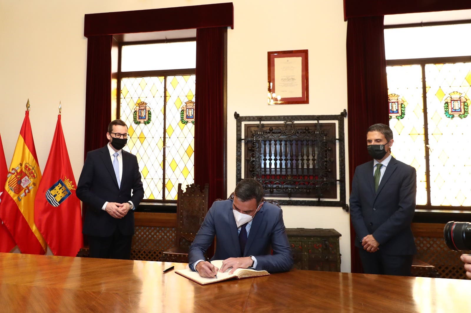 El alcalde de la ciudad ha recibido a Sánchez y al primer ministro polaco, Mateusz Morawiecki, en el Ayuntamiento de la ciudad, tras la parada militar que ha tenido lugar en la Plaza de Cervantes. Posteriormente el presidente y el primer ministro han firmado en el libro de honor de la ciudad.