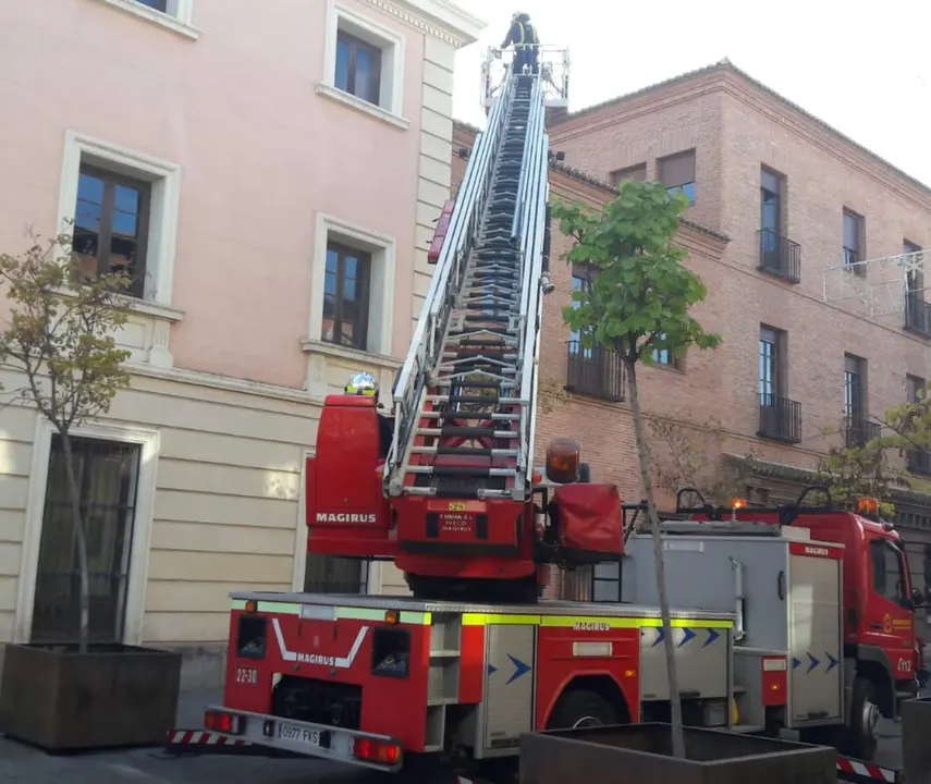 Parte de la cornisa del edificio se venía abajo dejando cascotes en el suelo y teniendo que intervenir los Bomberos. Afortunadamente nadie ha resultado herido.