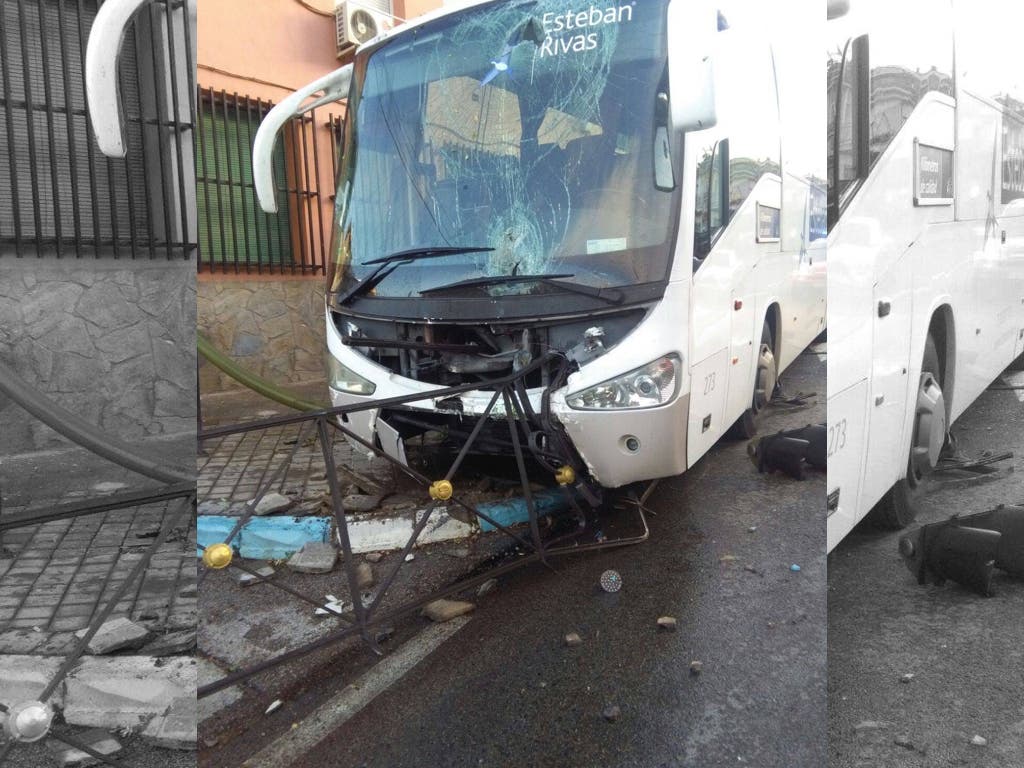 Un autobús escolar, de la empresa Esteban Rivas, al parecer ha tenido un problema con los frenos y se ha estrellado contra un vallado de metal de los que habitualmente protegen a los peatones en las aceras. Antes, se ha llevado por delante una serie de bolardos que han quedado tronchados como se puede ver en la imagen que te ofrecemos más abajo.